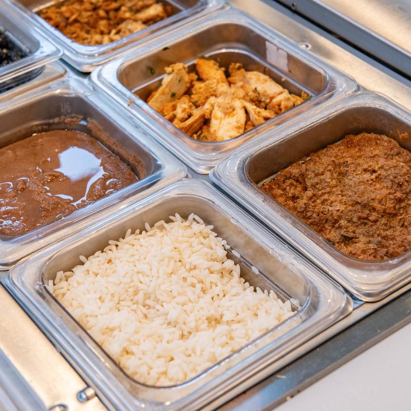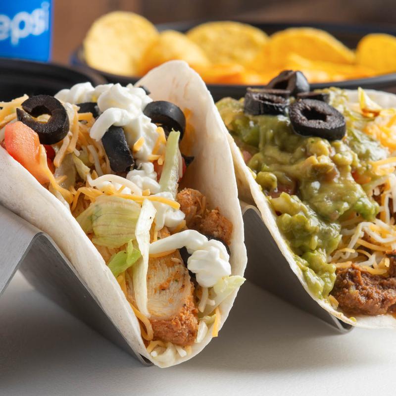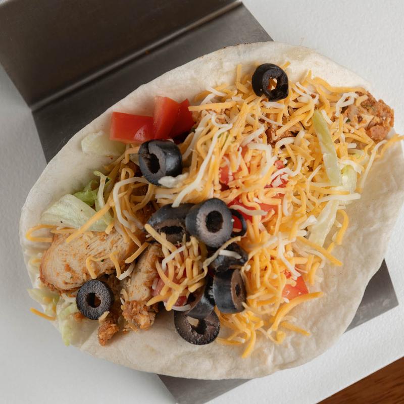 Side dish bar Grilled chicken salad, with cheese, lettuce, tomato, pickles, and... Interior, serving counter Quesadillas, with sour cream, and pico de gallo Chicken and beef tacos, with cheese, guacamole, olives, salsa, and... Grilled chicken and ground beef tacos, with toppings Nachos, with nacho cheese and salsa Beef burritos, with cheese, lettuce, and pico de gallo Grilled chicken salad, with shredded cheese, and mixed vegetables Ground beef and grilled chicken tacos, top view Ground beef burrito Grilled chicken taco, with lettuce, tomato, black olives, and... Ground beef tacos, closeup Grilled steak salad Ground beef taco, with mixed vegetables, and cheese Nachos, and steak salad Grilled chicken salad bowl Interior, working area Nachos, closeup Ground beef taco, with cheese, lettuce, peppers, onion, and tomato